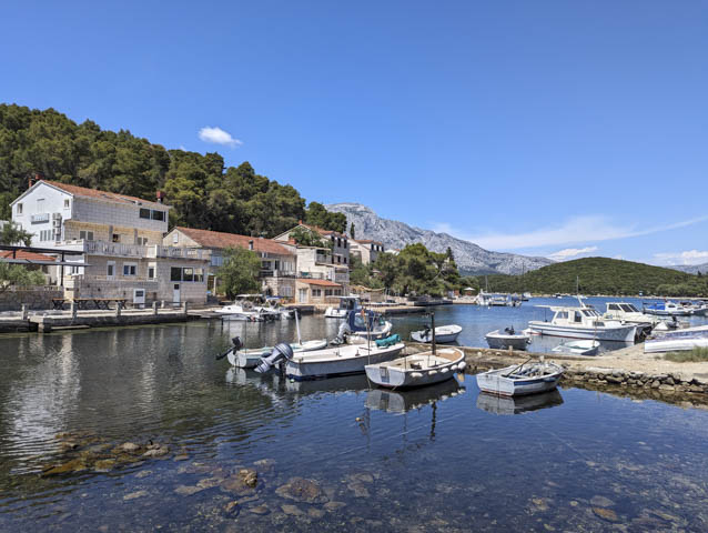 We drove along the peninsula and settled into the lovely Palme Campsite in the town of Kuciste, a short cycle ride from the larger and more well known town of Orebic. Although it was fairly busy, we managed to bag a spot at the front, facing onto the pebble beach. Across the water from here you can see the island of Korcula and the namesake town of Korcula.