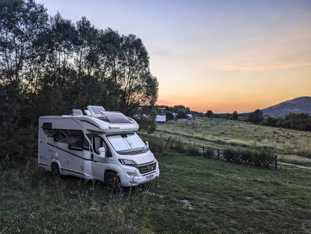 So with that in mind, we needed to find a campsite for a few days to settle down and monitor what was happening. The campsite we found was only a 30 minute drive from where we were, in the foothills of the local mountains which meant the potential of cool nights despite the heat wave that was still engulfing the Balkans.
