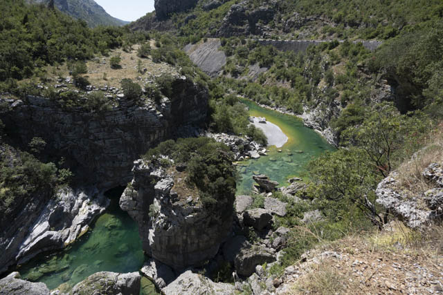The road then descends alongside the lake through a series of tunnels cut through the rock walls of the cliff. We arrived at the lake and the small town of Pluzine where we got out for a walk around, but there isn’t a great deal here to hold your attention so it wasn’t long before we were back on the road.