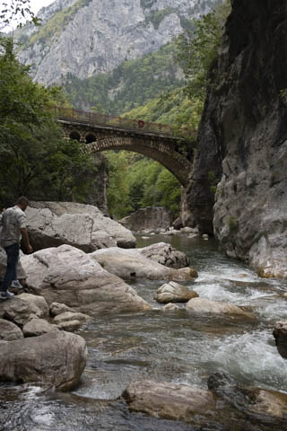 After strolling around town and enjoying a very cheap lunch (two pizzas and bottled drinks – still no running water, for a bargain €7.40!) we retraced our steps back to the car and drove past our campsite in Junik and back through the traffic of Peja to visit the 13th century Patriarchate of Pec monastery and Rugova river canyon. Well, we wanted to get our monies worth out of the car hire!