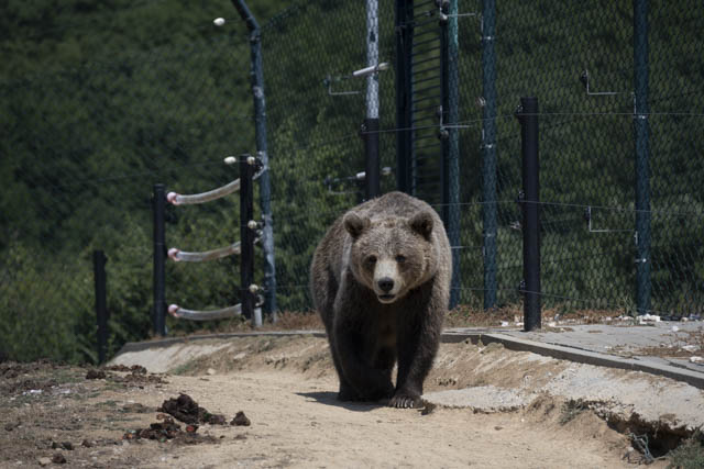 After a busy day we headed North of Pristina, the capital, where we spent a free but sleepless night in the car park of Prishtina Bear Sanctuary listening to the stray dogs barking. Tired but still excited to see some bears, we started the hilly 2km route around the complex, where strangely they also house a lion?!