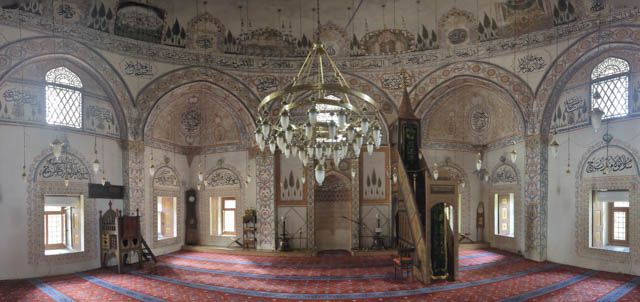 If you continue to drive up the river valley out of town you get to the 14th century ruins of the Serbian Orthodox Monastery of the Holy Archangels, and once through the police guard we were met by the one remaining monk who lives here. He very kindly offered us cold bottled water (we must have looked a bit hot after an afternoon of cycling around town) and of course the usual offer of coffee. If only we drank coffee we would never have to buy our own, we get offered it so frequently. Balkan hospitality continues to impress us. This monastery was looted and destroyed by the Ottomans and over a century later, the materials were used to build the Sinan Pasha Mosque on the banks of Prizren river.