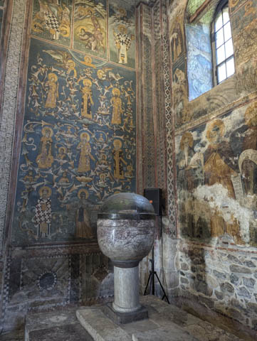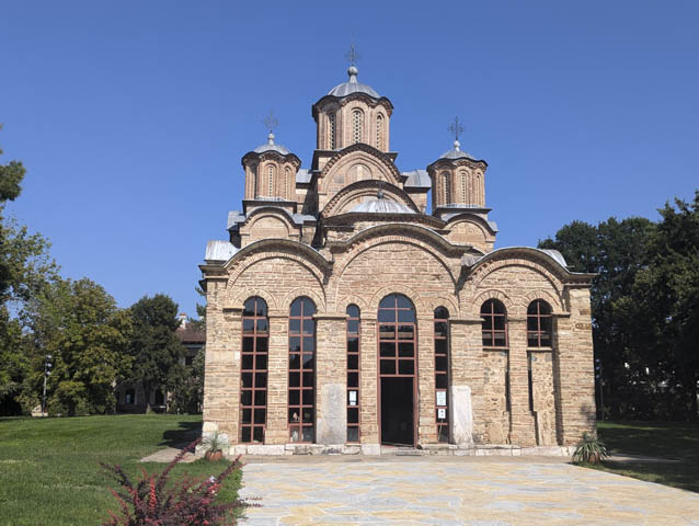 After a sweaty morning walking around the sanctuary (take a hat if you plan on visiting, there is very little shade) we drove to Gracanica where we knew of a hotel (with showers and a pool) that welcomed campers, but first, a visit to Gracanica Monastery. The monastery now serves as a convent and there are currently 24 nuns in residence. The reason we wanted to visit this monastery is because we had already visited the replica of it (or one of, there is another in Chicago) on this trip in Trebinje, Bosnia.