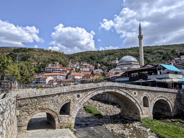 Prizren is the second largest city in Kosovo and Peja is the third largest, so we were expecting chaotic streets and crazy traffic much like Peja, but in fact there is a much greater sense of space in Prizren with a much more laid back vibe and with far more navigable streets. It is an attractive city built along the banks of Prizren river, over which spans the 16th century Old Stone Bridge, with the Sinan Pasha mosque rising against a wooded hillside, atop which, you will find Prizren Fortress.