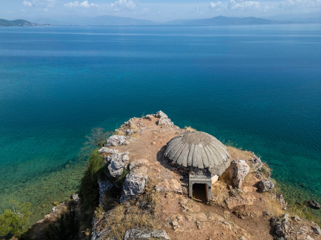 A little further along, on a small rocky promontory sits the Bunker Church. The site was previously a tiny church but a concrete dome was placed over the top to create a bunker as part of Hoxha’s crazy bunkerisation project previously mentioned.