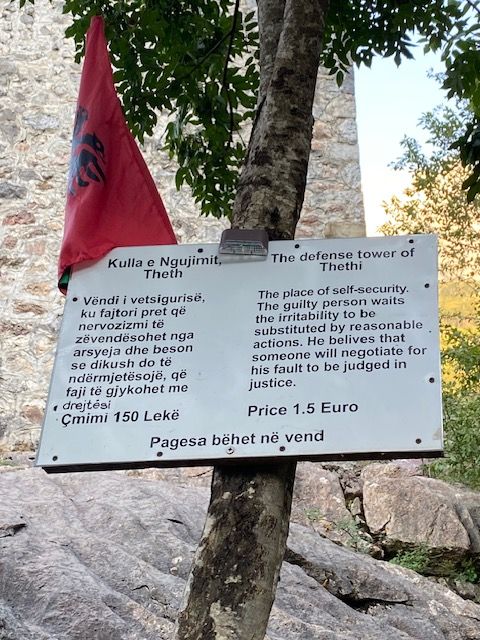 After the hike we visited the 19th century village church (which is said to have been used as the village hospital in the communist era (meaning that most locals over the age of 25 were born there) and Kulla Tower. This is a 400 yr old stone tower where people were held during a family blood feud before they were either killed or spared – at least that is how I have interpreted the sign. See what you think!