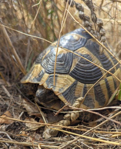 While visiting the church we heard some rustling In the grass and were delighted to see a wild tortoise pushing its way through.