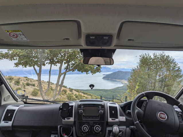 There is a very nice park-up along a narrow spur road with a beautiful view of Lake Prespa, which had barely any passing traffic, so we were a little surprised when three 4×4 vehicles on a tour parked up around us and took their groups to the view point where they gave them some local information about the area. However, the good thing about being this high is that it is pretty cold out of the sun, so it wasn’t long before we had the place to ourselves again.