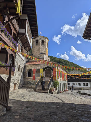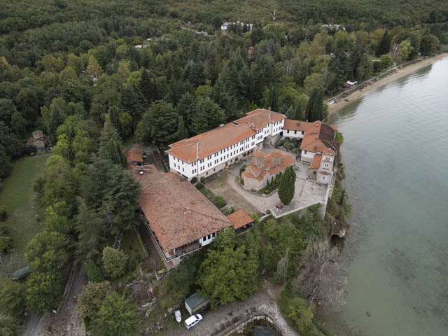 Further still along the shore is the Sveti Naum Monastery. This was unlike any other monastery we had seen so far on this trip, in that it seemed more like a monastery theme park. There is a boating lake with boat trips to the Springs, roaming peacocks, restaurants, a hotel and souvenir shops lining the promenade up to the monastery. The place is a money-making machine with coachloads of people being bussed in, including from over the border in Albania. The original church on this site was built in 900 but this was destroyed by The Ottomans in the 15th century and the current Church of Sveti Naum was rebuilt in the 16th and 17th centuries.