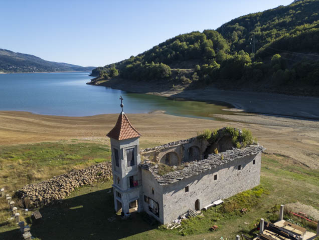 We ventured into Mavrova ‘town’ the next day which is no more than a village really but it is in a lovely setting overlooking Mavrova lake where we visited the abandoned roofless church of St. Nicholas with its impressive tiled floor. What’s even more impressive is that since 1953 the church has been submerged on and off through the seasons by the lake depending on the water content and yet it’s still standing. There are even objects in the church which suggest that it is still in use despite the new church in town.