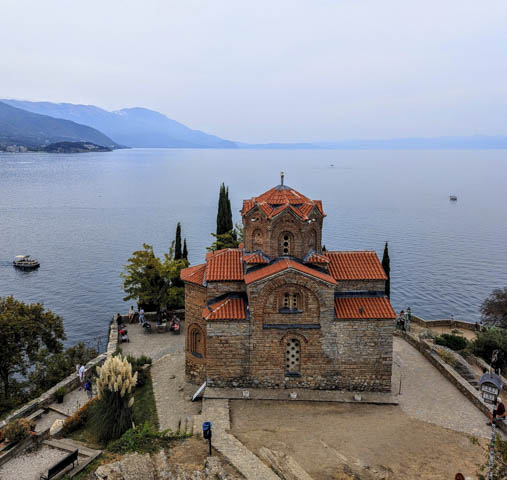 The walking tour takes you down narrow cobbled streets, past numerous churches, along a cliff-side boardwalk, past beautiful waterfront restaurants where we decided to stop for a leisurely lunch and a glass or two of wine, before climbing up to the picturesque Church of Sveti Jovan overlooking the lake.