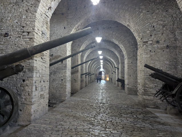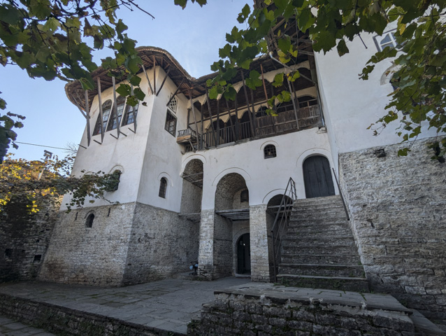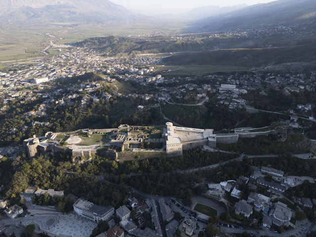 At the top of town, there is, like in most towns, a large castle, built from the 12th century onwards. The castle was built to defend the river valley it overlooks, which was a key strategic route. It fell into Ottoman hands in 1419 and Ali Pasha significantly expanded and remodelled it, including adding the clock tower which was built to enable people to see the time for prayers easily. During the communist era it was used as a prison but ever since has been refurbished as a heritage site.