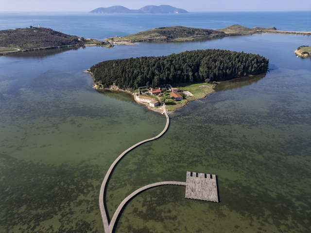 Once back on the road and down the other side of the pass you reach the busy town of Vlore. We didn’t explore Vlore itself but we did stop briefly to visit St Mary’s Monastery, which is built on an island in a lagoon and connected to the mainland by a boardwalk. It is a pretty location but the site itself is small and there were swarms of bugs, so with no reason to hang around we carried on to our next destination – Apollonia.