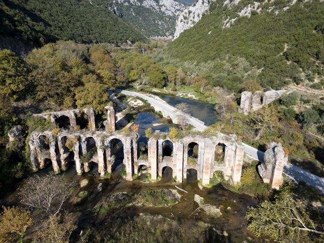 We needed to get some miles under our belt but couldn’t resist stopping off at the Roman Aqueduct of Nicopolis, near Preveza, for a quick poke around. The aqueduct was one of the most important structures of the Roman period in North Western Greece. It was built to provide Nicopolis with clean water and runs for 50 kms from the springs of Agios Georgios. If you take the staircase and then scramble up and along the hillside a short distance you can see the channel through which the water travelled, a short section of which is complete with an arched roof.