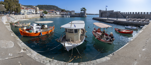 Nafpaxtos has a lovely old Venetian harbour where a few small fishing boats are moored surrounded by cafes and bars and just a short walk from the town square. We stopped here for what turned out to be a very good hot chocolate and some idle people watching.