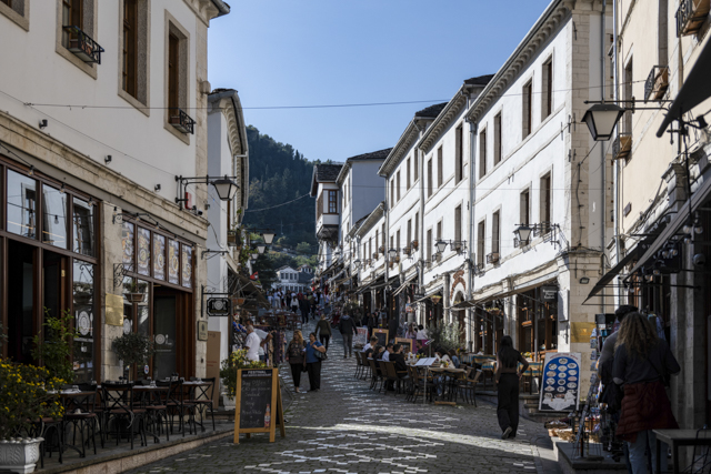 There is a new town that sits next to the river but from here you can’t actually see the old town and so, on first sight we were a little underwhelmed and wondered what all the fuss was about, especially having visited Gjirokaster which has similar buildings. However, if you follow the course of the river you reach the old town area where on both sides of the river, the old style buildings can be found which give the city its nickname.