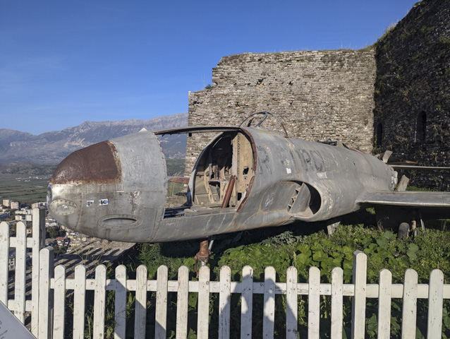 Displayed in the castle is the wreckage of an American fighter jet, a Lockheed T-33 Shooting Star, which was supposedly shot down during the cold war. The pilot was initially held as a spy but he was eventually released to return home.