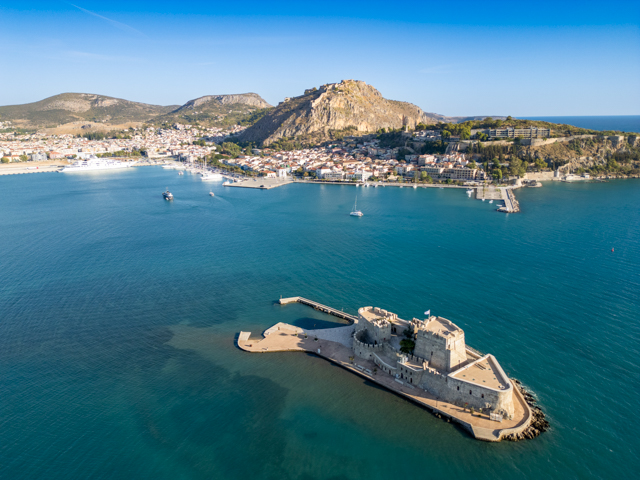 From up in the castle you can look down across the town and harbour and to the Bourtzi Castle, which is located on the island of Agioi Theodoroi.