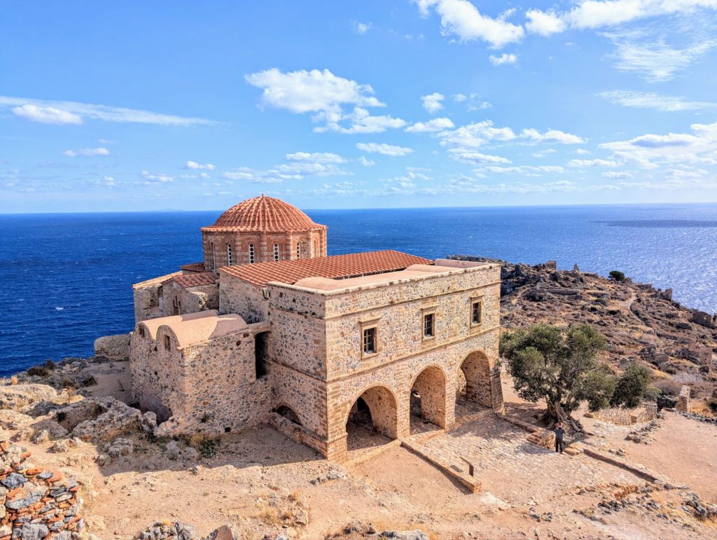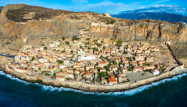 The old town of Monemvasia consists of a well restored and lived-in town with lots of bars, restaurants and hotels alongside old churches. This is a walled town and looks to be very well defended as the walls abut the rough seas and look all but impossible to breach. In fact, originally the only way to the city was by boat but eventually a paved pathway was built to provide access. The town is known as the “Gibraltar of the East” as a result of its location.