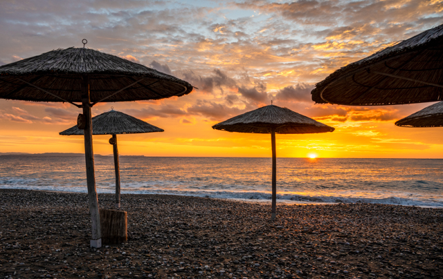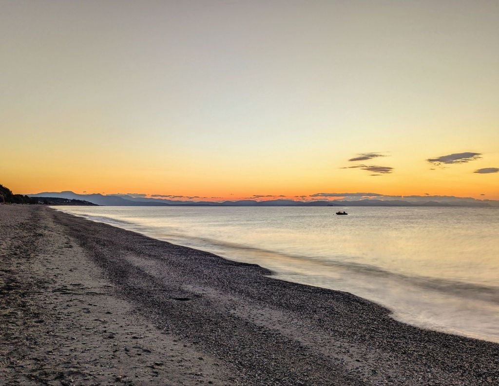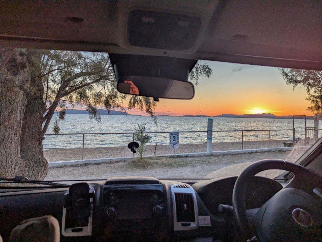 In the morning we skirted the city of Kalamata before ending up at a campsite that we had been recommended, called Camping Loutsa. This was just outside the small fishing village of Foinikounta and was situated on a beautiful sandy beach. The campsite was due to shut for the season in a few days and wasn’t very busy meaning we found a spot on the front rank looking out over the sea.