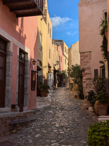 The whole time we were at Monemvasia the wind blew strongly. I cautiously flew my drone for some shots but had to be very careful as the wind was almost too strong and on one attempt I wasn’t able to make it back to the start position so had to move along the city to get to a point where I could land it.