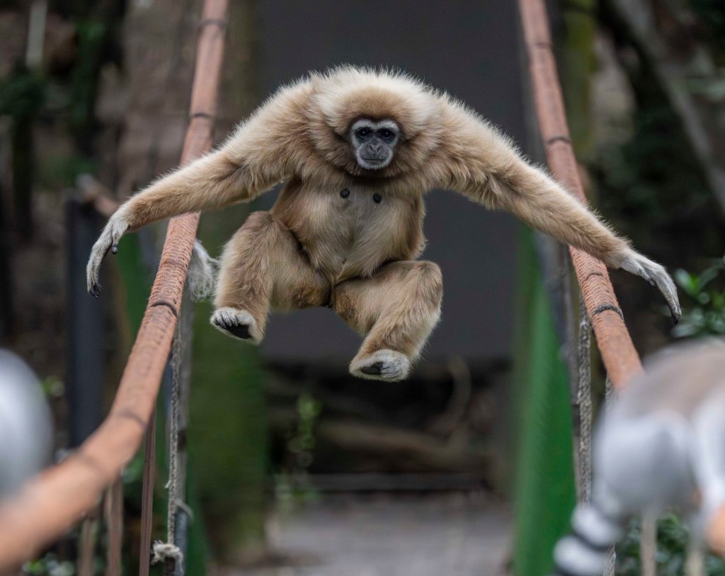 The highlight of the tour was at the end when you cross a big suspension bridge in the canopy and sitting at the end was one of the White Handed Gibbons who proceeded to swing down the bridge right towards us. The guide said duck so we squatted down as the gibbon swung over our heads !