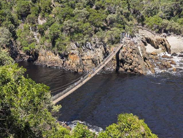 Unfortunately it was too rough to kayak from the home base of the kayak company to the mouth of the river so we started with a kilometre walk along a boardwalk with lots of steps to the river mouth where there are a couple of famous suspension bridges across the river.