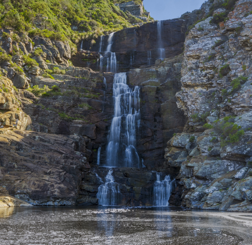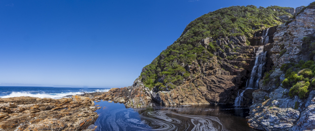 The other thing I did at Storms River was a reasonably strenuous coastal hike along part of the Otter Trail to a waterfall next to the beach. The hike was a little harder than expected as there was a lot of climbing up and over the cliffs and onto the beach itself where you had to rock hop over rough stones.
