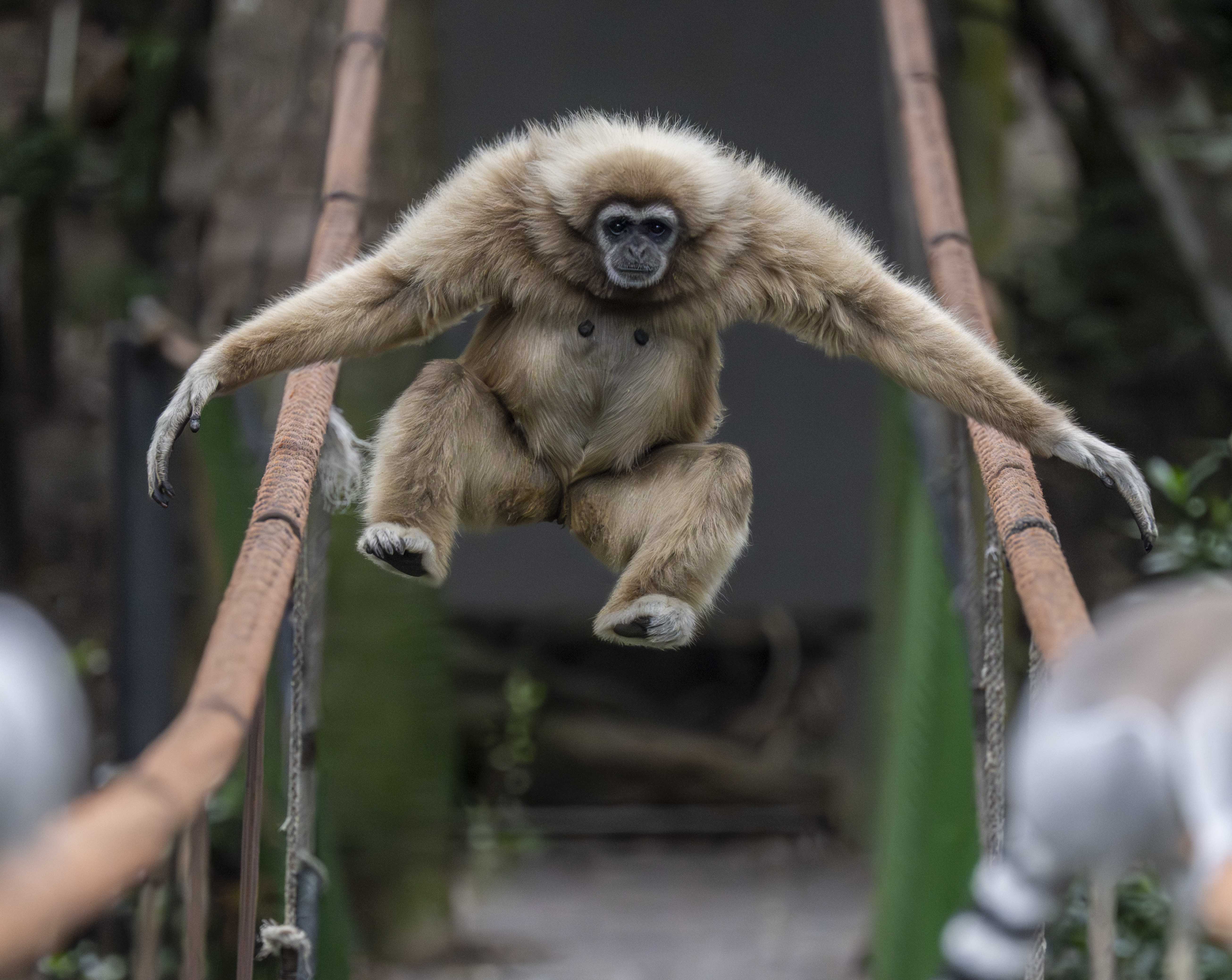 The highlight of the tour was at the end when you cross a big suspension bridge in the canopy and sitting at the end was one of the White Handed Gibbons who proceeded to swing down the bridge right towards us. The guide said duck so we squatted down as the gibbon swung over our heads !