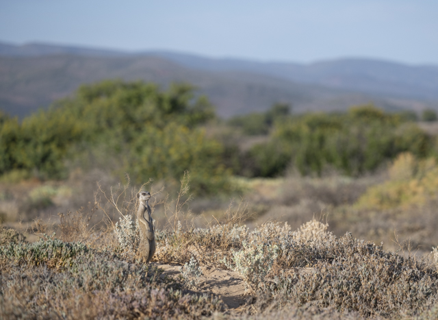 We set down our chairs in a rough semi-circle, at a good distance away so as not to disturb them (there were about 14 people in the group) and waited for the Meerkats to emerge. It didn’t take long before the first one appeared and sat back on his tail to survey the world.