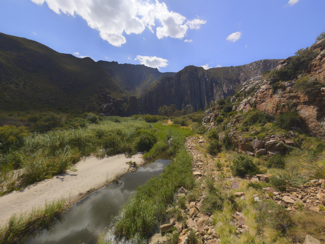 After finishing up at the Wildlife Ranch we headed off for a drive over Swarzberg Pass, a mountain pass on a gravel road. We were a bit dubious as to whether we had the right car for the job but as it turned out the road wasn’t too bad and the little Starlet did a great job. The scenery on this drive between Oudtshoorn and Prince Albert was stunning and if you are in the area we highly recommend it. You can do this as a loop drive and 5km from Prince Albert the road is paved all the way back to Oudtshoorn. There was also some much needed relief from the baking heat on the loop back with a cooling swim at Meiringspoort Waterfall, which was a quick climb up from the road and set in a beautiful canyon that felt like a real oasis.