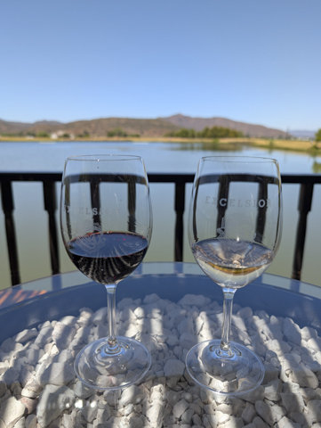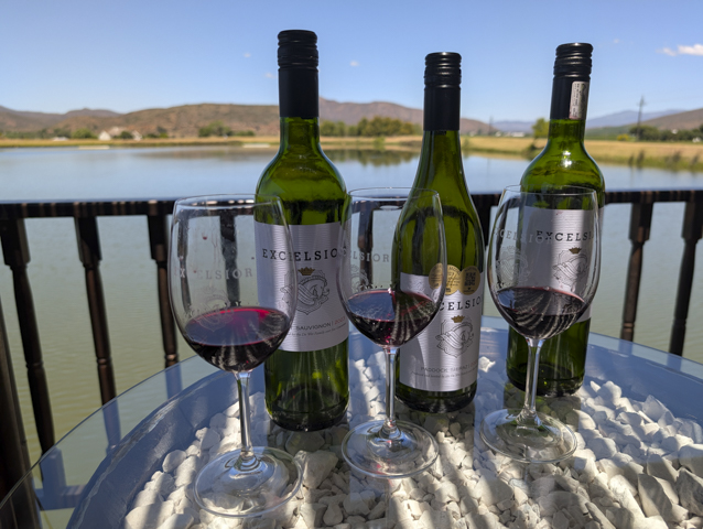 Our next winery was Excelsior which also had a beautiful lakeside setting. After tasting three wines which were ok but not as nice as the Springfield wines, we decided to have a go at blending our own wine. This involved tasting three more wines and then deciding how to mix them to create our own bespoke wine.