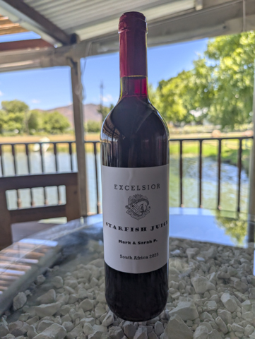 Taking a bottle we filled it with a mix of shiraz, cabernet and merlot to make our own blend, then we corked it using a corking machine and printed up a label to make our very own bottle – “Starfish Juice” – an in-joke with some friends of ours.