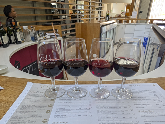 After lining our stomachs we went to the bar for another tasting selection of four wines. The Van Lovren wines were very good and we particularly enjoyed the reds.