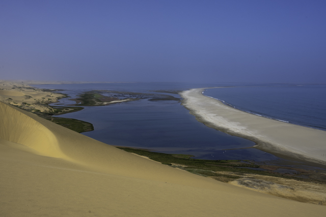 We drove along the beach until we turned back into the dunes and climbed up to a viewpoint over Sandwich harbour. This is a huge lagoon that is protected from the sea by a spit. However in recent years the water has been contaminated by seawater so is no longer the fresh water haven it was.