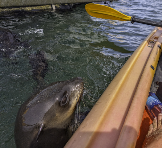 The ones out on the platform were mostly pups and they were really playful. We had one nibbling on our paddles and come right up to the side of the kayak. We thought he was going to jump in at one stage.