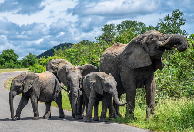 As usual, we ended up short on time and running late to get to the camp gate before closing, so we speed up and were making good time when we ran into a herd of Elephants walking down the middle of the road.
