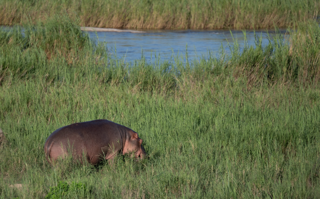 We took our time on the drive, which is partially along the Sabie River, and were rewarded with a rare sighting of a hungry Hippo out of the water during the day.