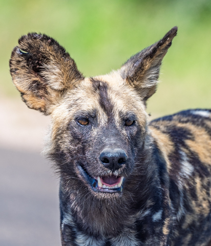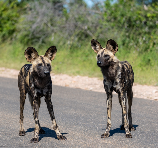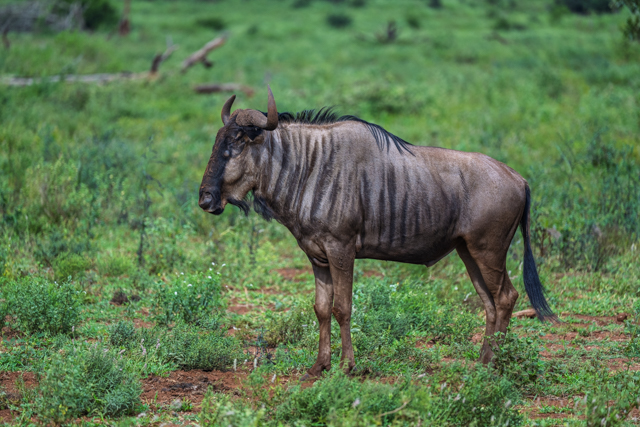 The absolute highlight of this drive was coming across 3 Wild Dogs (or Painted Wolves as they are also known) who were using a raised area of the road as a lookout from where they were watching herds of Wildebeest and Zebra grazing. We watched as they cautiously approached a sole Wildebeest, however he had spotted them and bellowed loudly. Suddenly a number of Wildebeest appeared out of nowhere and once he had back-up he aggressively approached the dogs who eventually backed off. It was fascinating to watch this interaction.