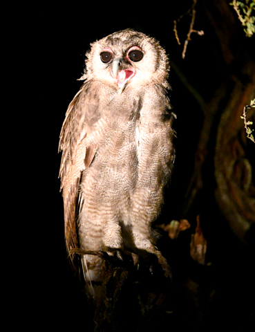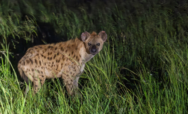 We had booked an official park game drive for the evening and were desperately hoping it would be better than the one we did in Etosha where we saw very little. This one started in the full dark and when we climbed onboard and the truck started up, we were pleased to find that it lit up like a Christmas tree with spotlights on both sides and two strong white spotting lights. This was much better than the single red spotlight we had in Etosha.