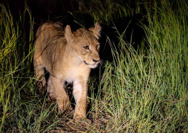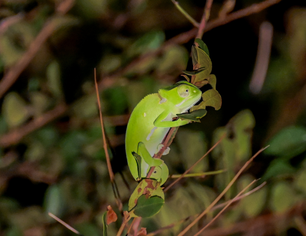 We also saw owls, chameleons, a snake in a tree, numerous small deer but the absolute highlight of the nights was coming across 2 lionesses walking down the road. They were patrolling their territory using the road as a convenient path. We followed them as they made their way along, at a fair pace, before having a five minute break to groom themselves and starting their patrol again.