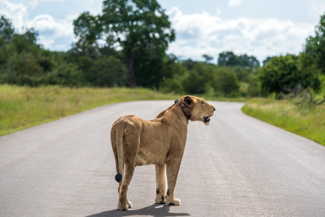 On our afternoon game drive we saw a Lion walking along the road almost as soon as we started, although she soon headed off into the bushes. This is the first animal we’ve seen wearing a tracking collar.
