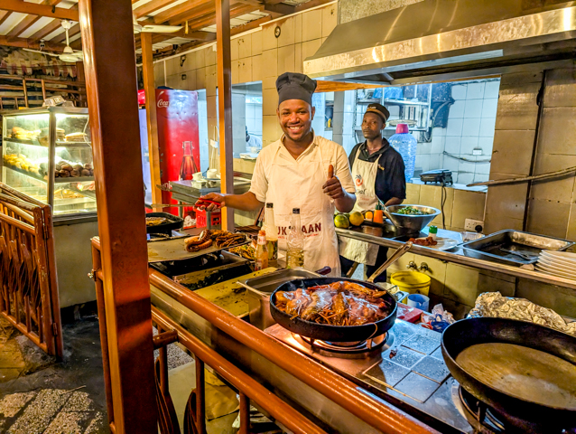 On our first night in Stone Town we visited the historic Livingstone hotel for sundowner drinks. Unfortunately as it was Ramadan we weren’t allowed out onto the beachfront dining area until the sun had set but we could watch the sunset from the 1st floor terrace. Once the sun was safely down the area came alive and we had dinner with our feet in the sand on the beach.