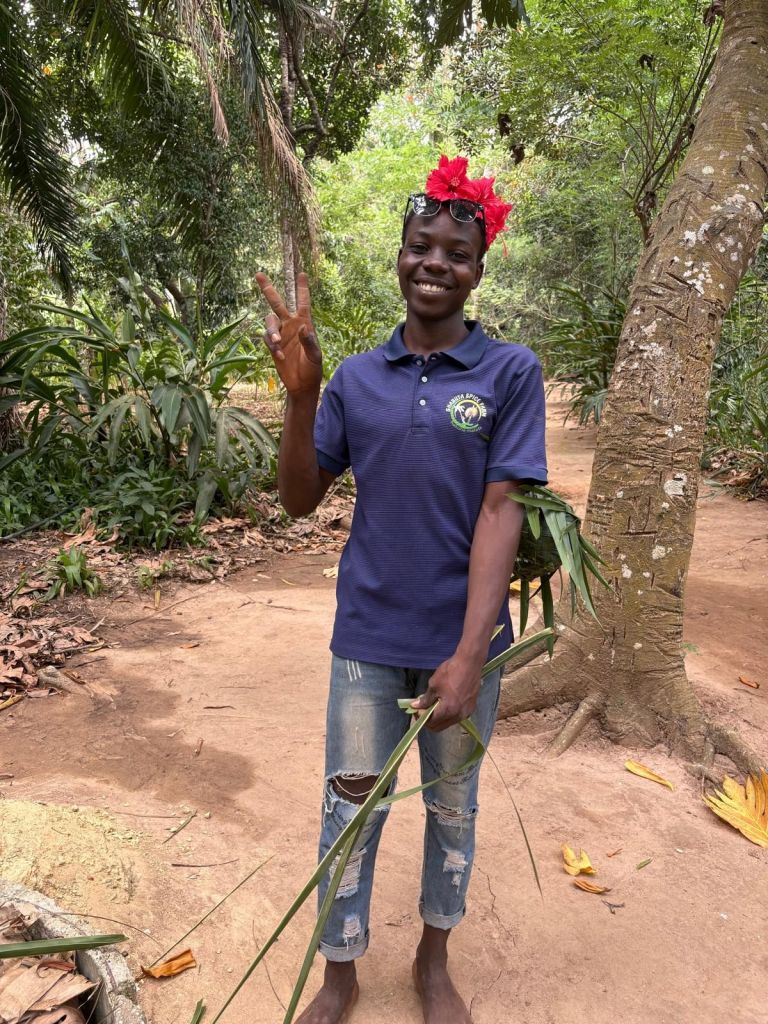A young lad who helped guide us through the farm spent his time making various things for us including crowns for both of us and glasses, a bag and a combo bracelet and ring for Sarah!