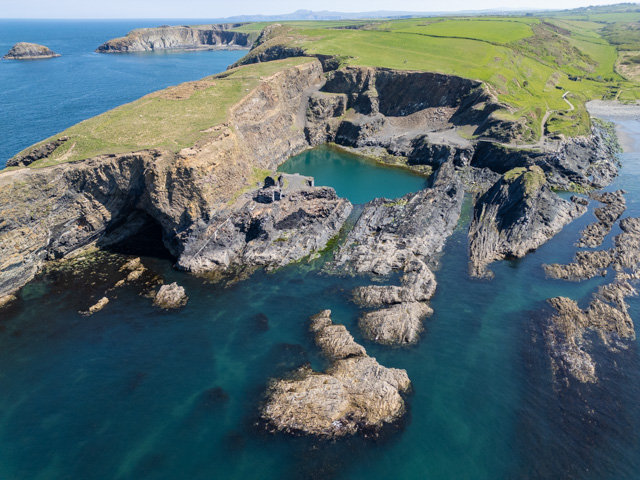 From here we carried on up the coast to the former industrial port of Porthgain. This tiny pretty inlet has a harbour which used to ship quarried and prepared slate around the country, some from the Blue Lagoon we had just visited. Eventually the slate stopped being shipped and it became a centre for brickmaking but after the 1930’s it was abandoned.