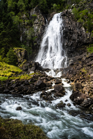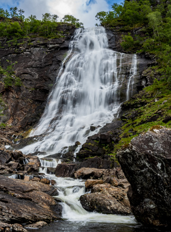 The first of which was Latefoss, which thunders down right beside and then underneath the road and secondly, Espelandfossen. They are located very close together with only a tiny parking area but with a little patience and a bit of driving back and forth we eventually got ourselves a spot.