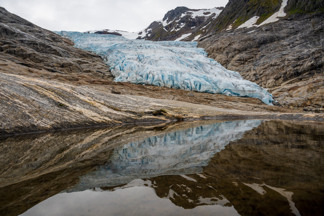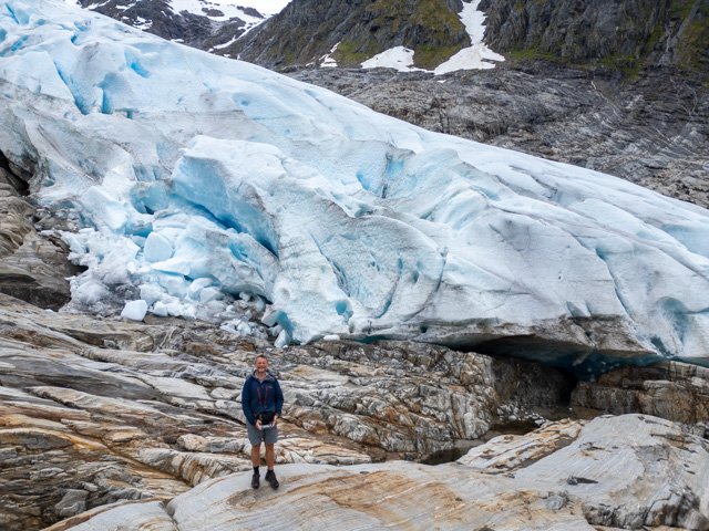 There was one real highlight though as we got closer to Bodo which is the Svartisen glacier. This is visible from the highway although to get to the trail head you have to get a ferry 15 minutes across a fjord and then to avoid a 4km boring walk you can hire a bike to the start of the hiking trail to the glacier.