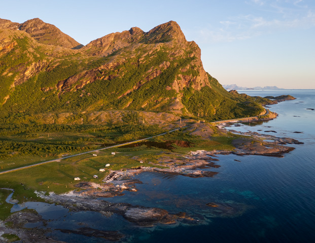 First up though we headed to the pretty island of Kjerringjoy, a popular weekend jaunt for the locals but not many tourists. There wasn’t much to see on the island except lots of lovely coastline and one of our favourite park-ups of this trip – a large grassy area on a beach with a pair of nesting sea eagles on the cliff opposite us. Finally the sun blessed us with its appearance and we enjoyed our first BBQ of the trip after over one month on the road.