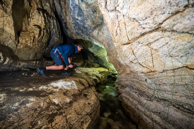 The exit from this cave is a climb up just before the chamber and requires a little climbing experience.