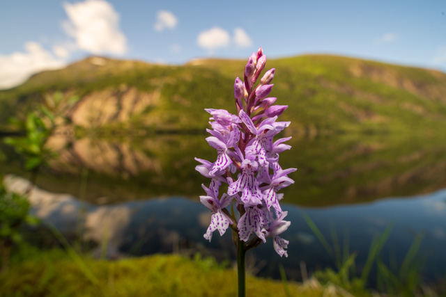 Back down the mountain there was no sign of the snow and beautiful wild orchids grew around a lake where we spent the night.